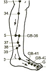distal points in the leg gb 39, 40 liver points