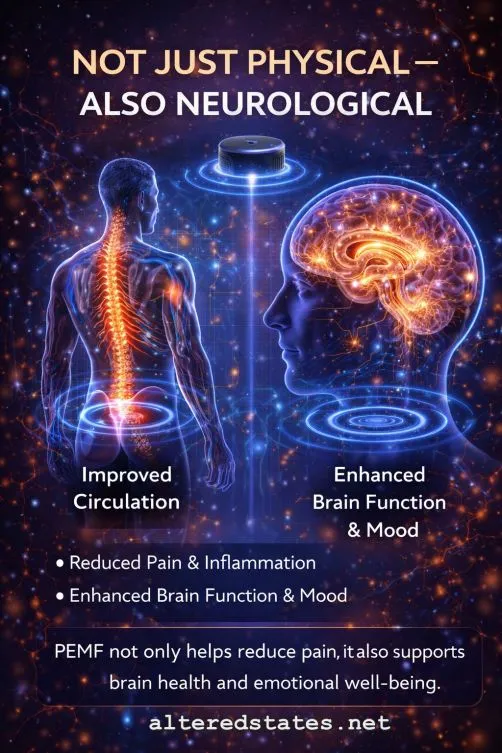 🧠 Not Just Physical — Also Neurological Pain is not only physical — it is also: • 🧠 Neurological Research shows PEMF can: • ⚡ Influence brain signaling Even placebo responses (up to 40%) highlight something important: The brain plays a major role in how pain is experienced PEMF may interact with this system. ⏱ Gentle But Powerful Unlike many treatments: • ❌ No drugs After thousands of patient-years of use, PEMF shows: Very low risk when used appropriately