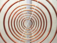 exist (see below). No adverse effects have ever been recorded whatever pathology, number and duration of sessions may have been applied to the treatment. These "sessions" last 15 to 20 minutes and are repeated about once or twice a week. We note instant progress in the general condition, and the tumor, when it is superficial, regresses within a few weeks and disappears by a few months, even though the treatment has stopped. The impression is that of a retard effect. Attempts to improve the results by means of pure continuous waves have all ended in failure (except for plant cancers, more sensitive to the least variations of electric field). The main reason was the absence of clear-cut impulses and the tension level used being far too low. For the sake of comparison, it was, in the first instance, equivalent to 100 kilovolts, and one to two thousand maximum in the lamp apparatus. Let us remind the golden rule : It is not simply a matter of routing energy to the cancerous cell but inducing into its membrane a long-lasting polarization. The cell is sensitive to the electric field only. All the power of a device is meant to supply a powerful field and not to heat. And what about the current set of devices available to us, operating at very low impedance (that is, delivering a large amount of useless power and a minimal electric field)? Besides, Lakhovsky's successors have been able to increase significantly the power by increasing the current, but results were disastrous! All it did was to warm up! Almost a burning process! So, a cause of great exasperation to the "master". Meanwhile, this heating element is an asset not to be neglected.