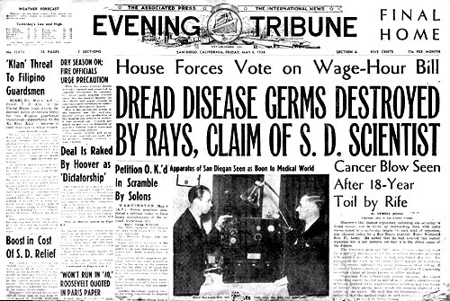with the new ray [Rife Ray #5 Clinical instrument] completely outside