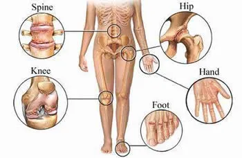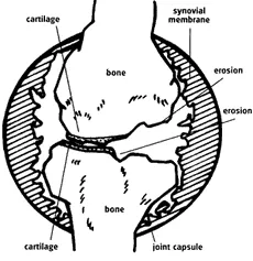 a bone-on-bone joint in extreme cases. Any joint can be affected,