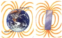 drawn to and oriented) by electromagnetic (EM) fields (compass