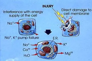 mV respectively. When cells are damaged, these potentials change