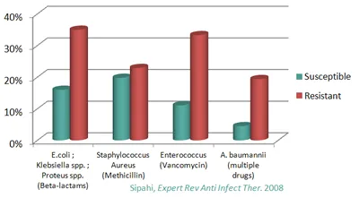 Mortality rates of infections by antibiotic resistant/susceptible