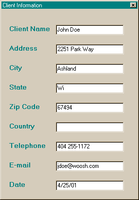 more practice is called for. Basic operation of the Harmonic Translation System Omega 9.01 Client Information When first starting a session it is recommended to go to File on the main "top" menu bar and click on Client Information. In the client information dialog box you may enter as much information as needed for this client. This step is optional. If you do not put client information into the dialog box, it will not automatically appear on client records when you save them. Close the client information box when you are finished.