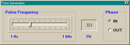 Select Pulse Frequency from the Translation menu bar. Feel for a reaction on the reaction plate as you point your cursor at the IN or OUT in the Phase section of the Pulse Generation window. Click on the one that gives you the reaction. In general, In phase is best for promoting new patterns and out of phase is best for antidoting old patterns. It is always recommended to test for the phase setting with the reaction plate. Click on the Pulse Frequency slider and drag it to where you feel the reaction on the reaction plate. You can then fine tune the setting with the right / left arrow keys. Close the Pulse Generation window when you are satisfied with the Pulse Frequency setting. Options: